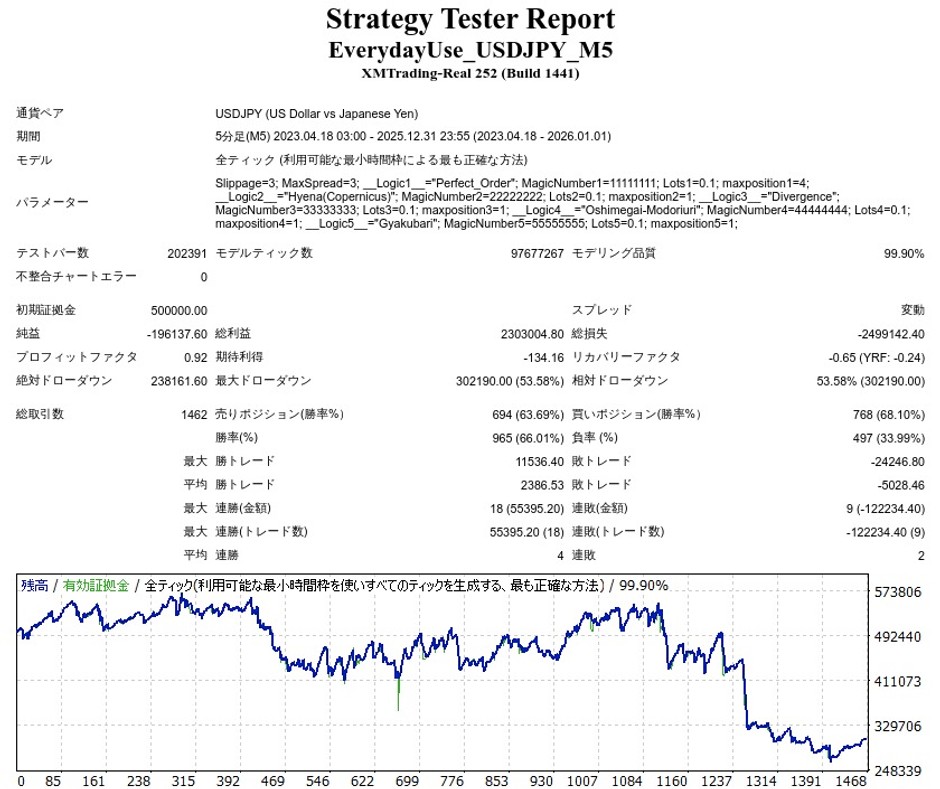 | 初期証拠金 | 500,000円 | 勝率 | 66.01% |