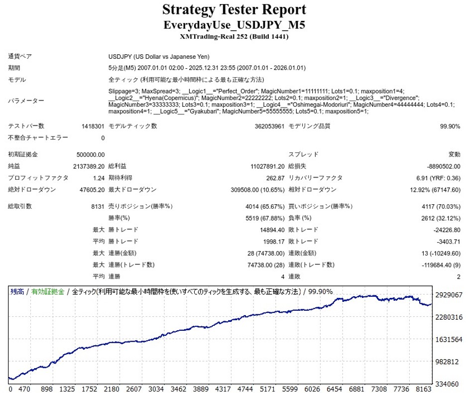 | 初期証拠金 | 500,000円 | 勝率 | 67.88% |
