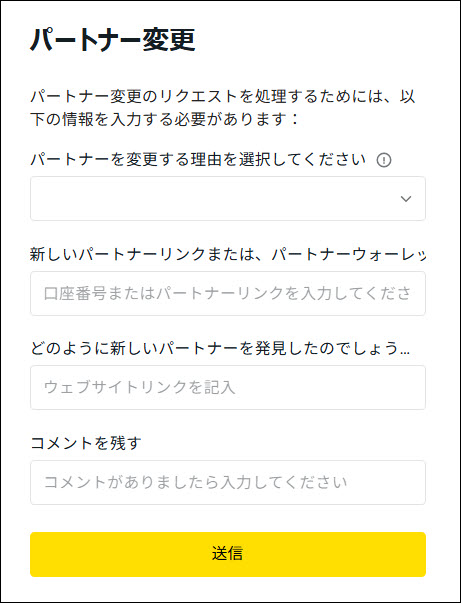 既にExnessで口座を持っている方は、別のメールアドレスで再登録するか、パートナー変更の手続きが必要になります。