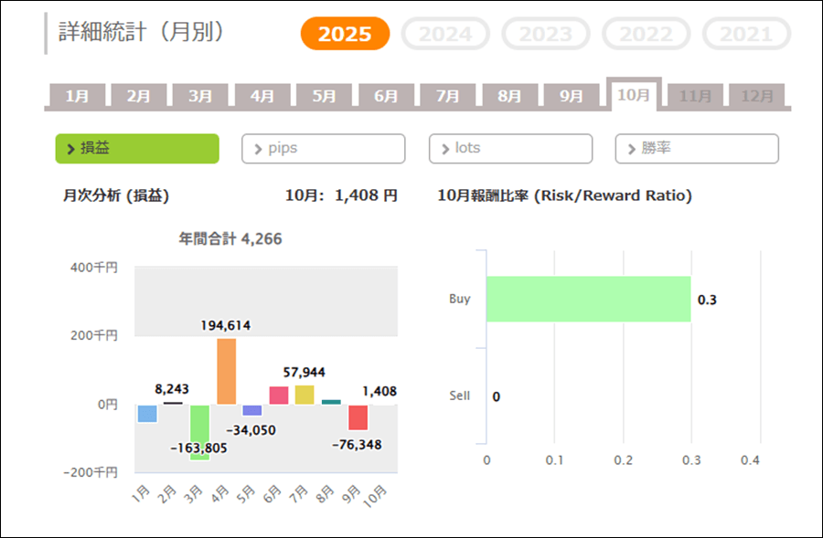 月次分析を見ると、2025年は今のところわずかにトータルでプラスです。