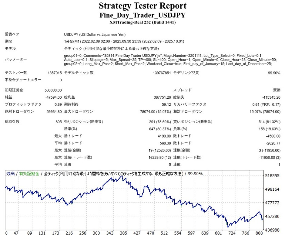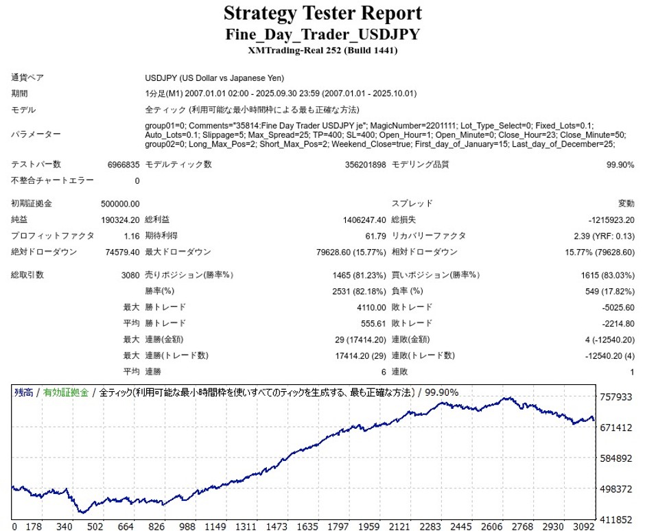 Fine Day Trader USDJPY jeのリリース後のバックテスト結果(≒フォワード結果)は以下のようになりました。