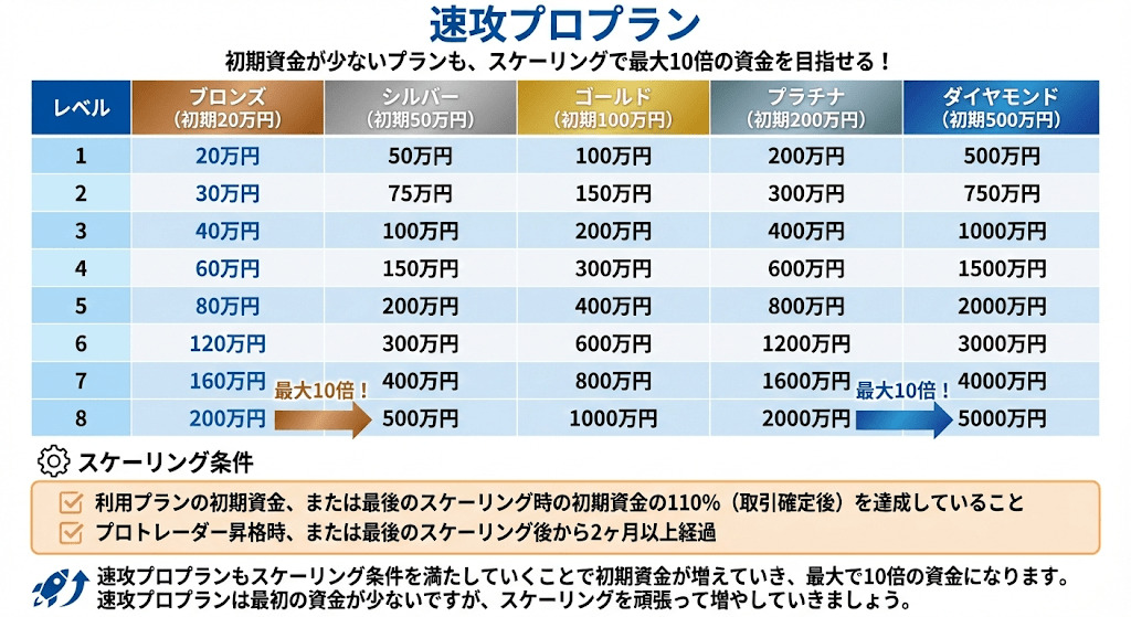 速攻プロプランはステップ1,2が無く、最初からプロトレーダーとして取引ができるタイプです。