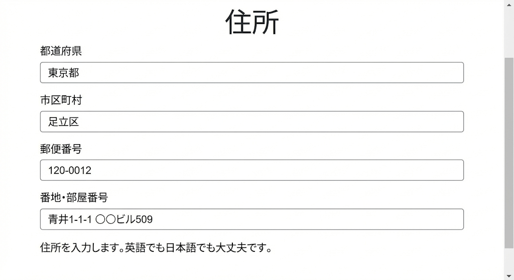 住所を入力します。英語でも日本語でも大丈夫です。