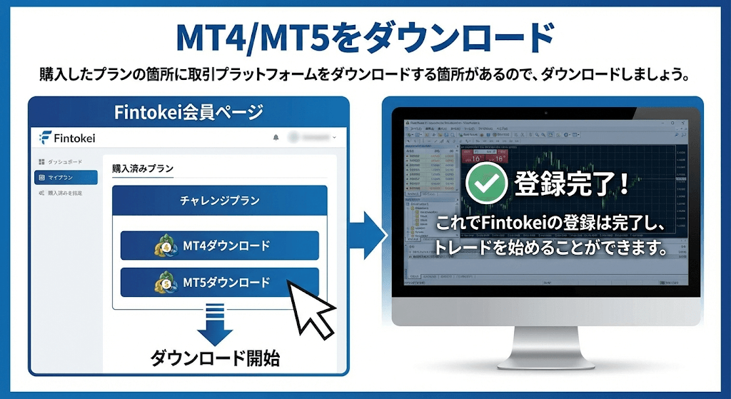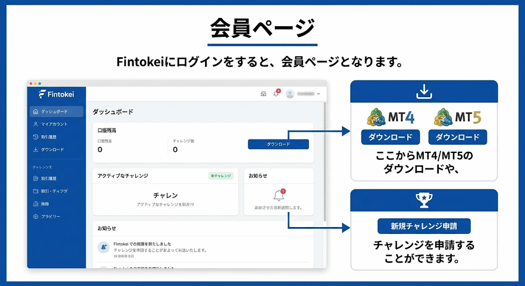 ここからMT4/MT5のダウンロードや、チャレンジを申請することができます。