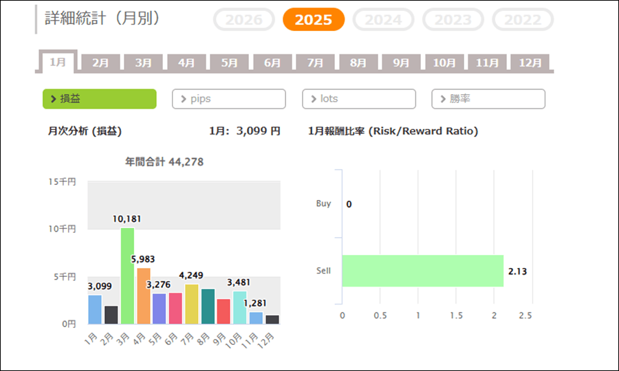 月次分析を見ると、ナンピン系ですので毎月利益を積み上げています。
