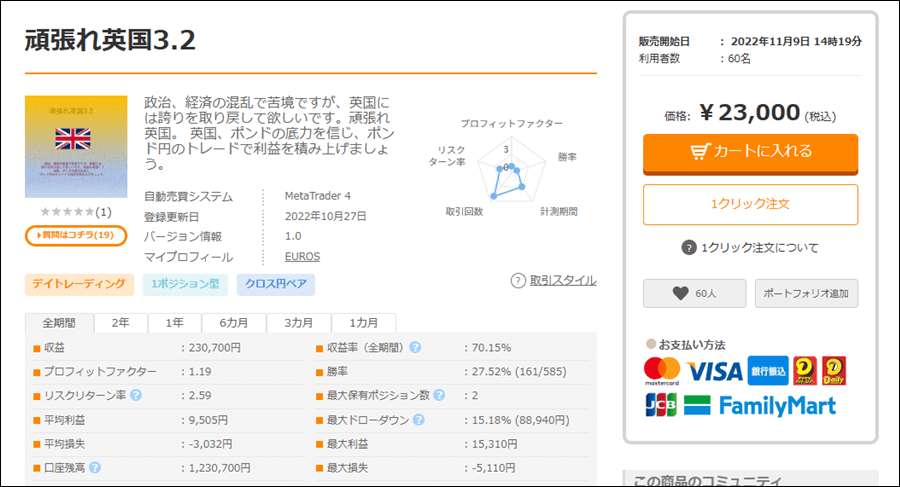 頑張れ英国3.2はGBPJPY専用のEAですが、成績はどうなのでしょうか。