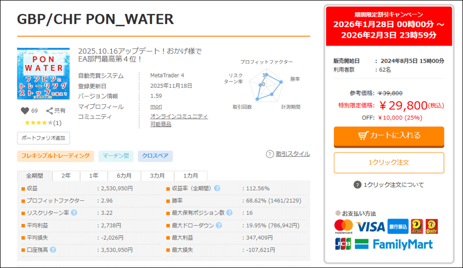GBP/CHF PON_WATERはナンピンEAですが、成績はどうなのでしょうか。