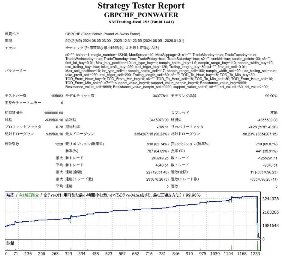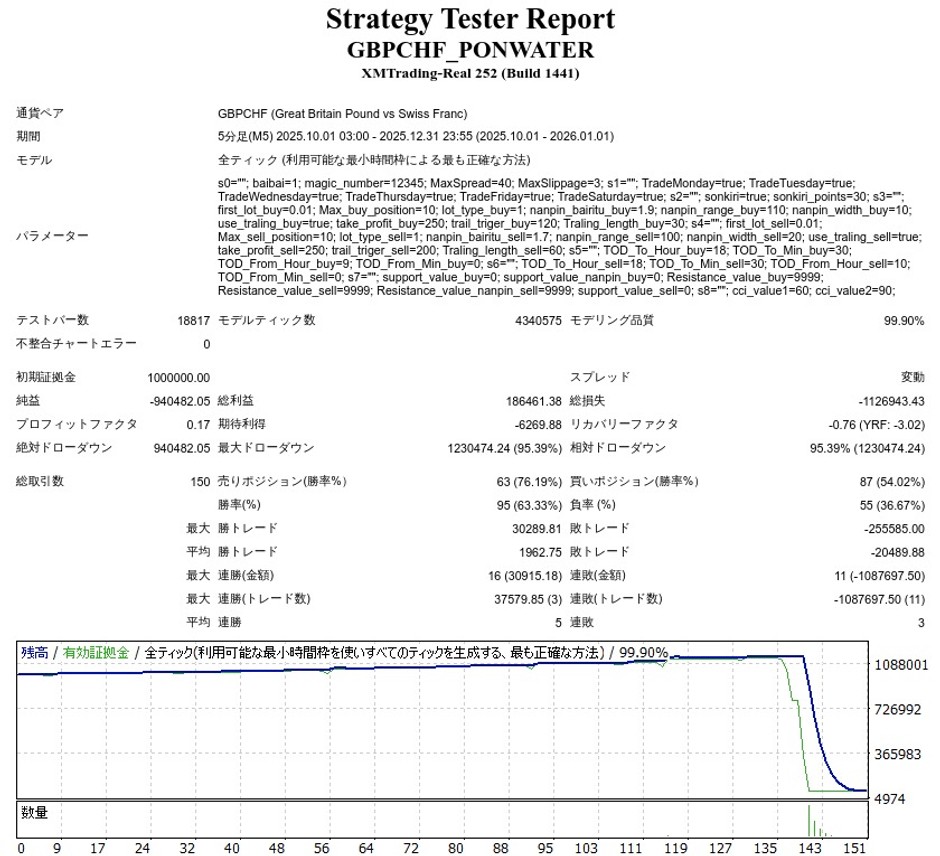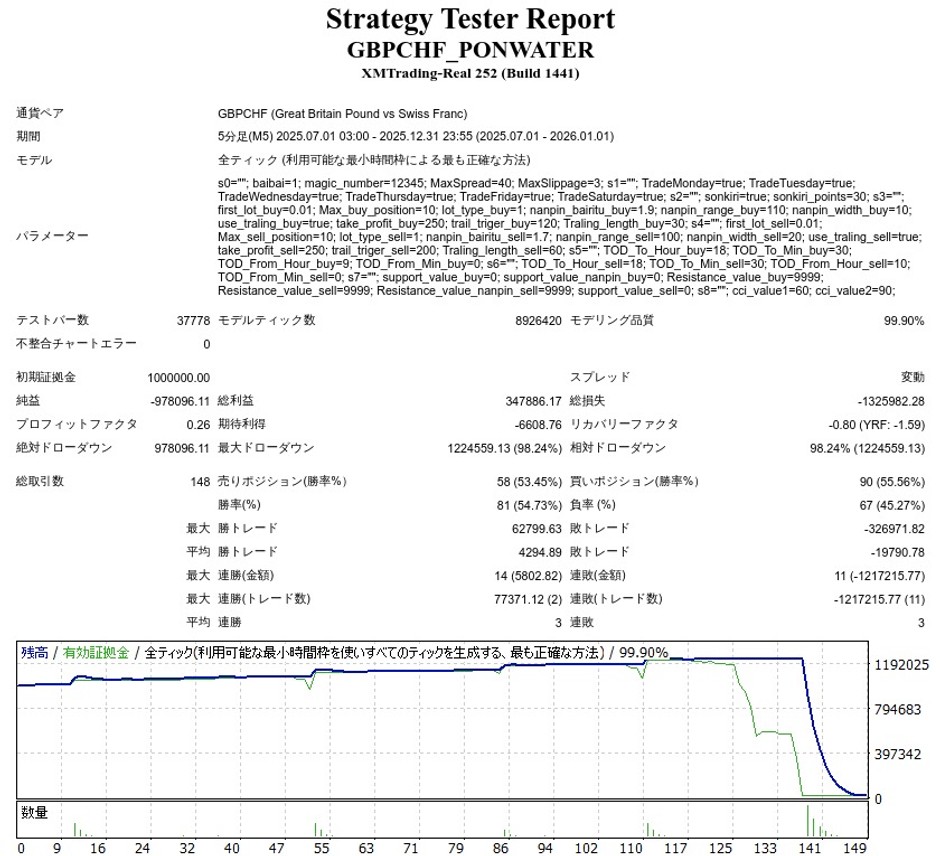 GBP/CHF PON_WATERのEA検証結果