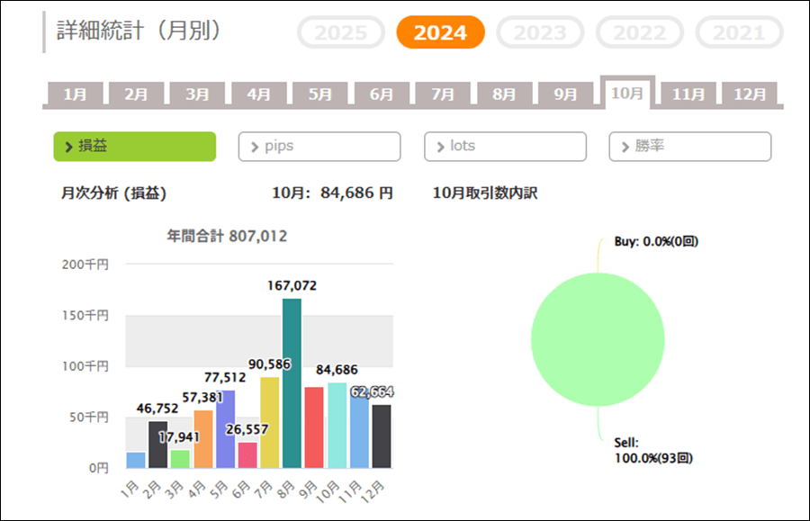 毎月1日~末日までの成績をまとめるとこのような成績となります。