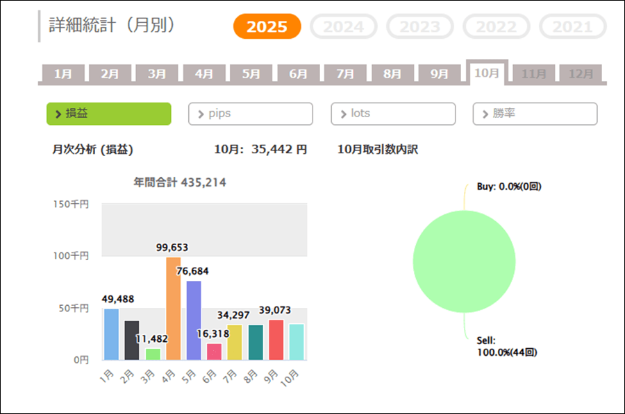 2022年~2025年9月の月間成績をまとめると+9.7万円(+19.4%)の成績となりました。