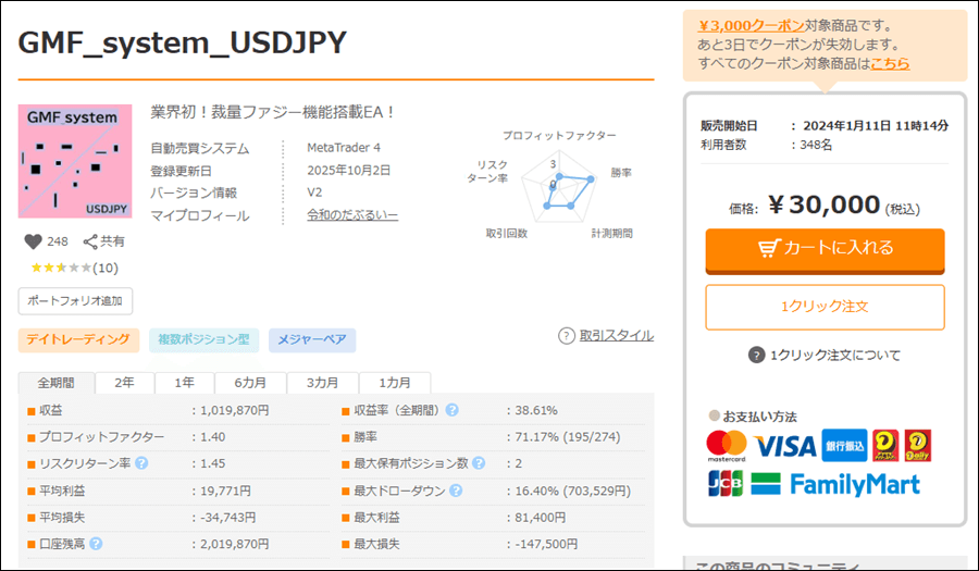GMF_system_USDJPYはUSDJPY専用のEAですが、成績はどうなのでしょうか。