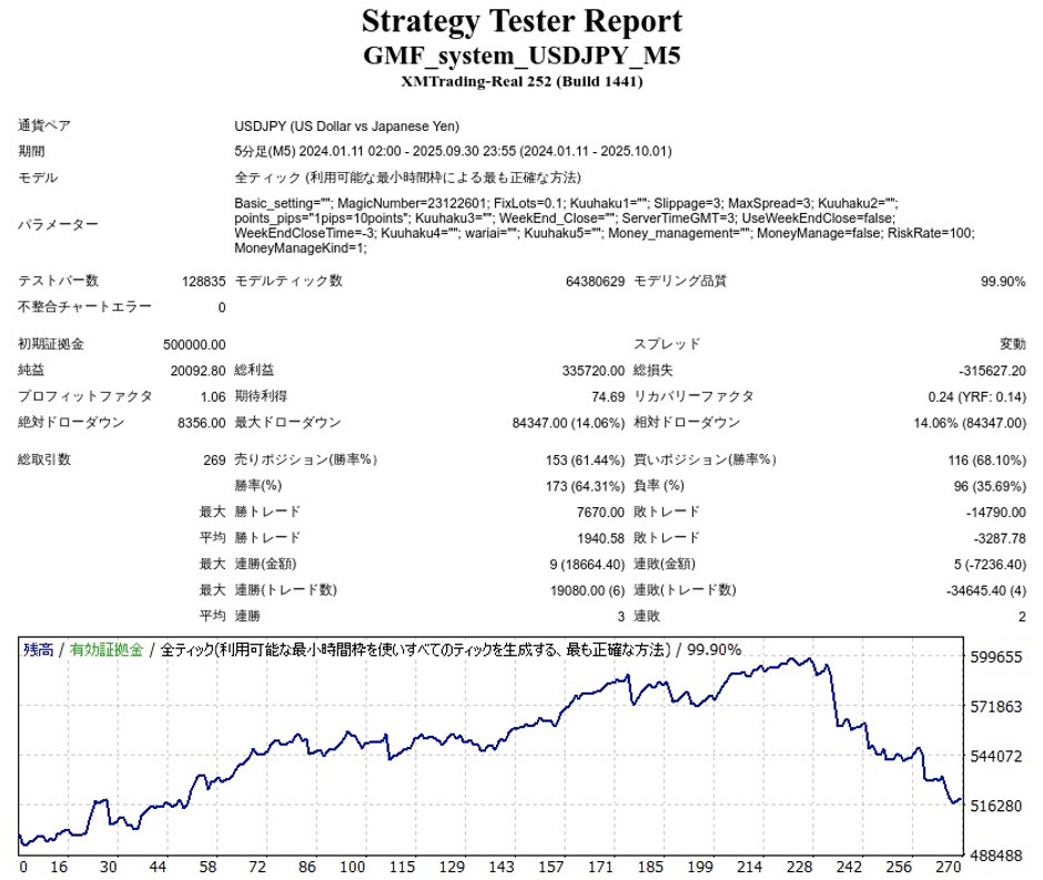 | 初期証拠金 | 500,000円 | 勝率 | 64.31% |