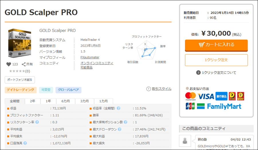 GOLD Scalper PROはGOLD専用のEAですが、成績はどうなのでしょうか。