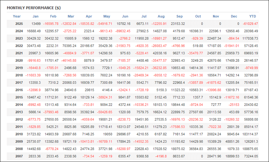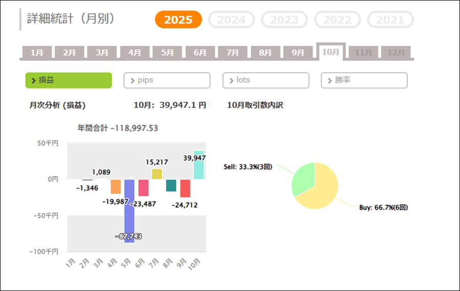月次分析を見ると、2025年は大きくマイナスになっています。