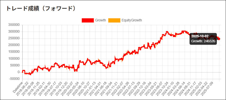 「バックテスト結果とフォワードテスト結果が違いないか」、「過去データに最適化し過ぎていないか」など参考にしてください。