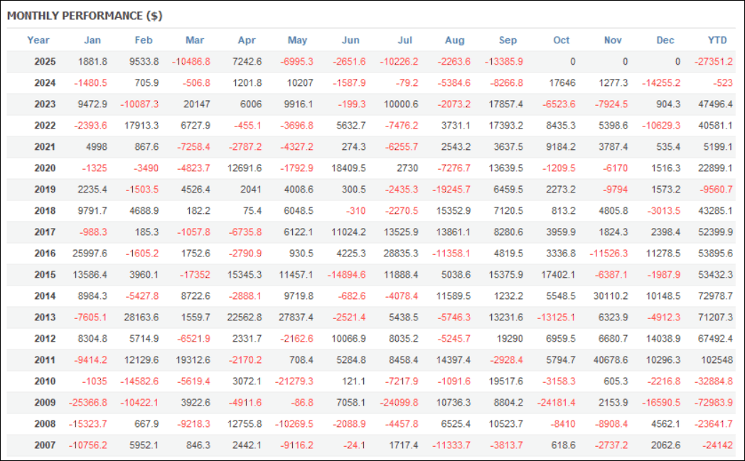 年次の成績を見ると、2011年からはほとんどプラス成績です。