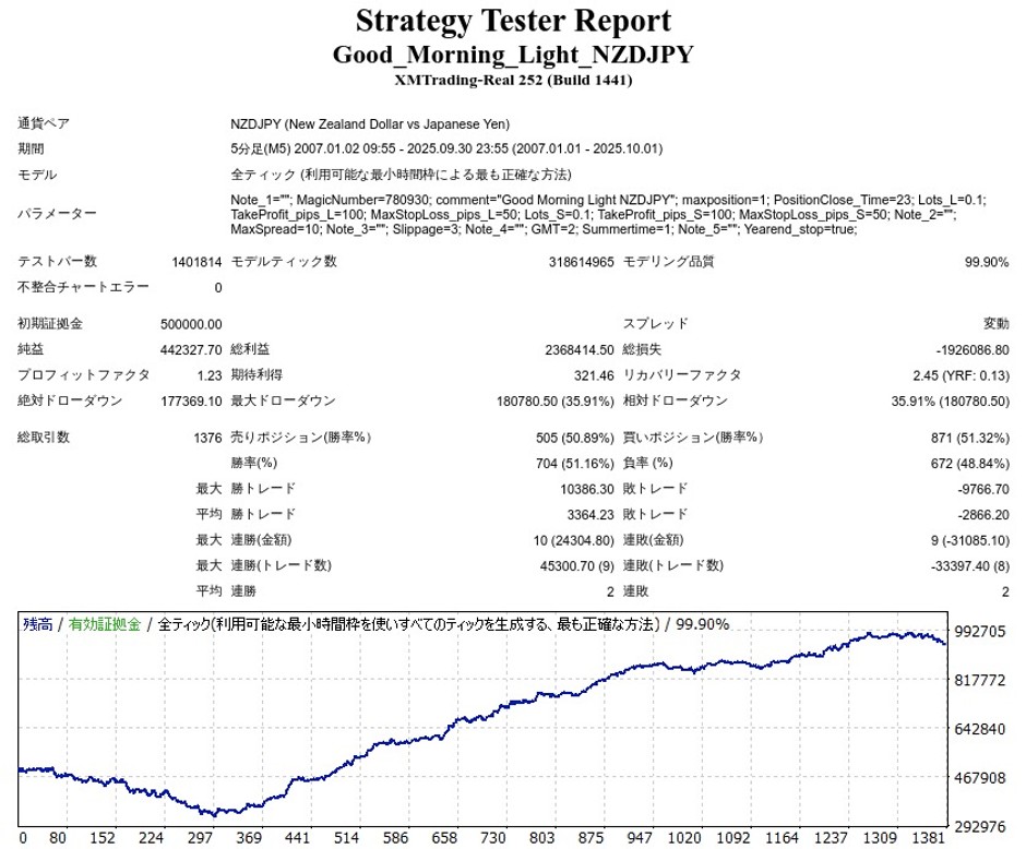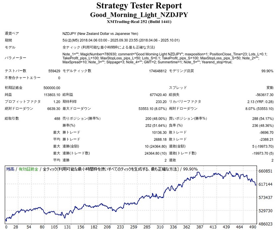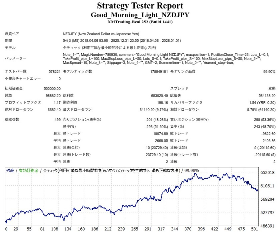 Good Morning Light NZDJPYはNZDJPYのデイトレードEAですが、成績はどうなのでしょうか。