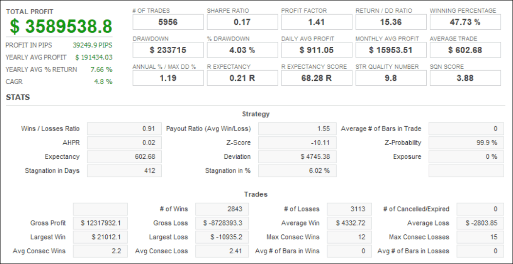USDJPYの成績は、過去18年で+59.0万円の収益でした。リリース後の成績は+1.8万円でした。