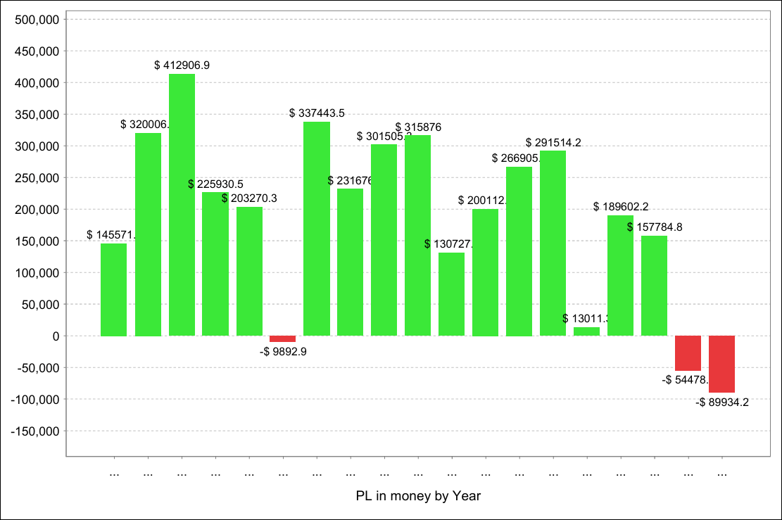 EURJPYの成績は、過去18年で+90.6万円の収益でした。リリース後の成績はわずかな利益となりました。