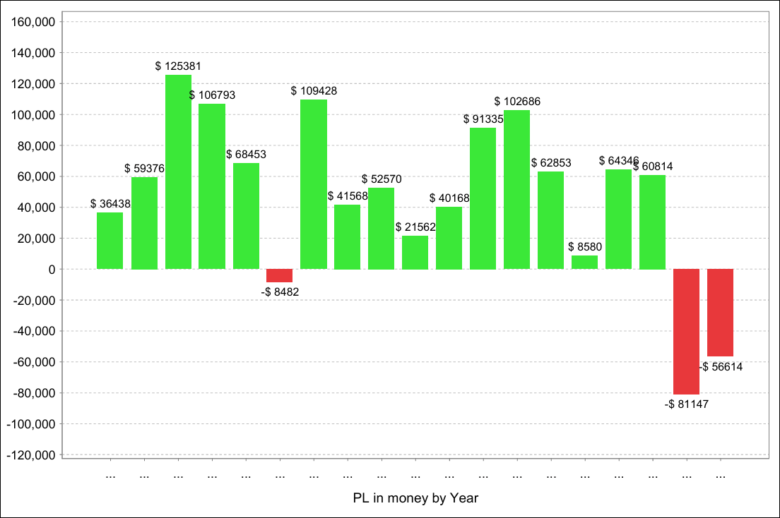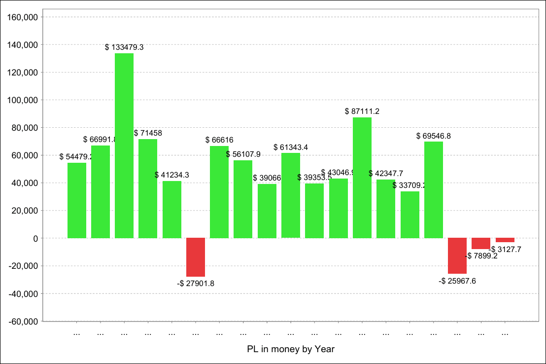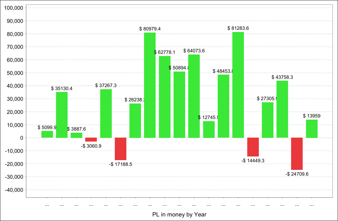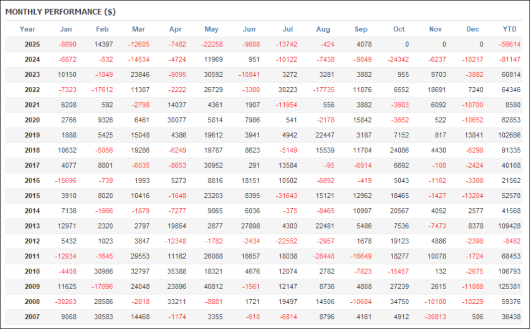 年次の成績を見ると、2012年と2024年、2025年はマイナスでそれ以外はプラス成績です。