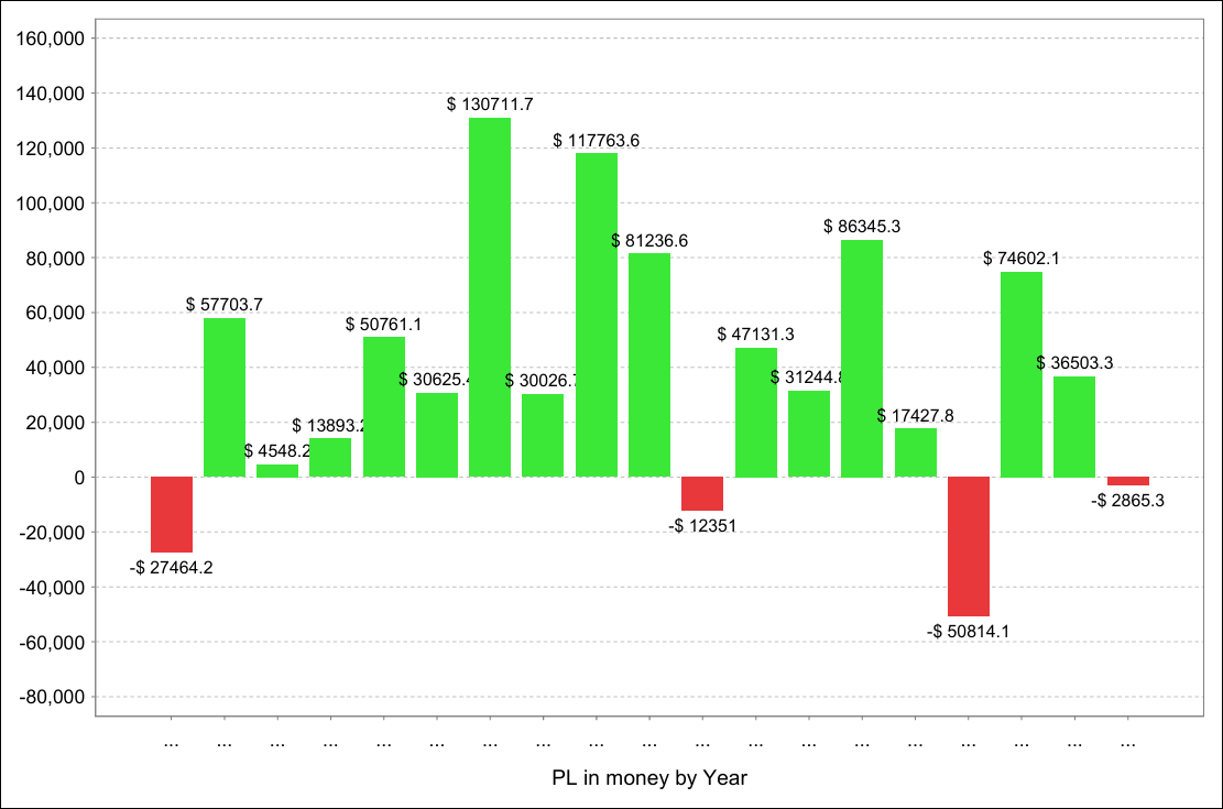 NZDJPYの成績は、過去18年で+53.4万円の収益でした。リリース後の成績は+6.3万円でした。