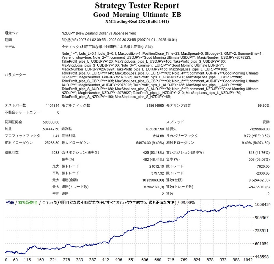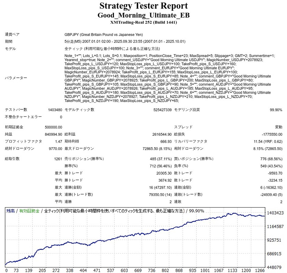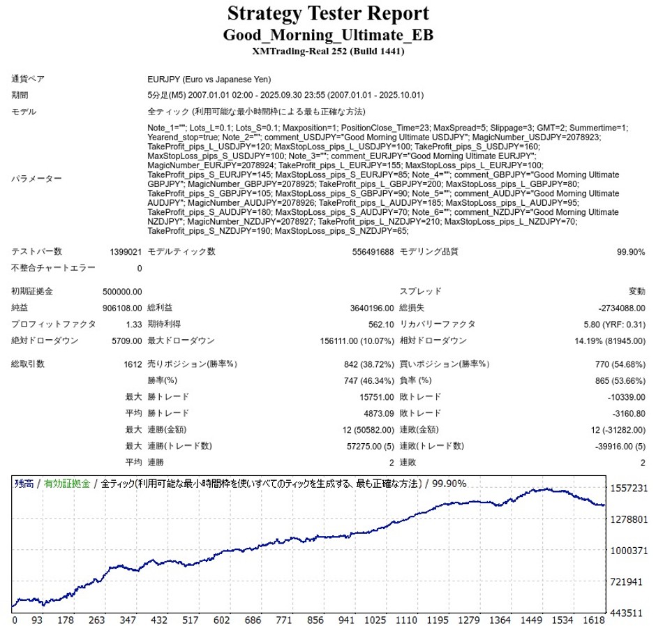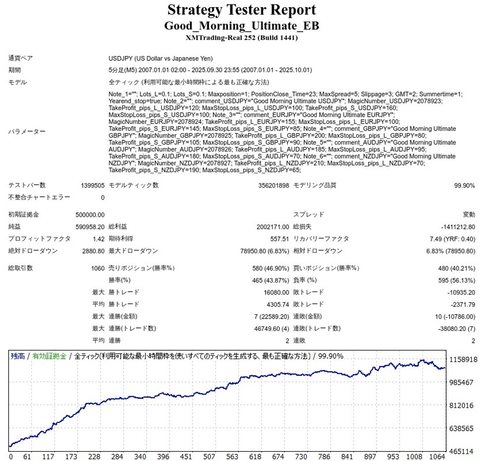 Good Morning Ultimate_EBは5通貨運用によるポートフォリオ型EAで、日本時間早朝の時間帯を利用したデイトレードのロジックです。