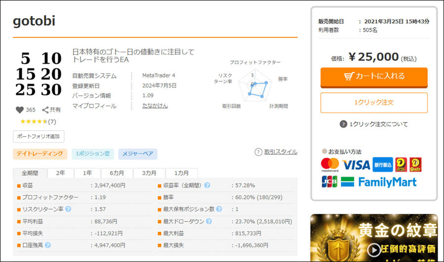 gotobiは1ポジション型のデイトレードEAですが、成績はどうなのでしょうか。