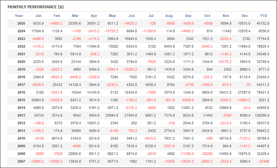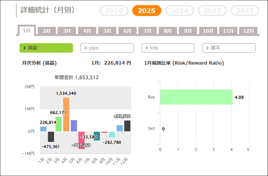 月次分析を見ると、2025年はトータルでプラスです。