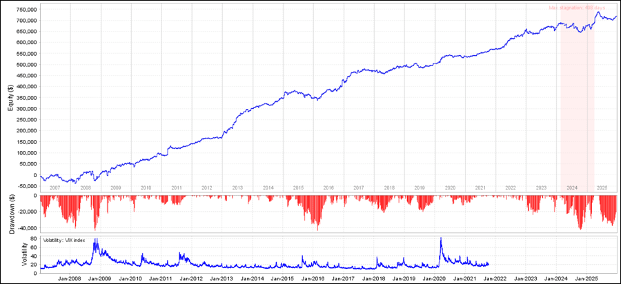 gotobiをQuantAnalyzerで見てみると、2024年に停滞時期がありますが、それ以外は全体的に利益が上がっています。