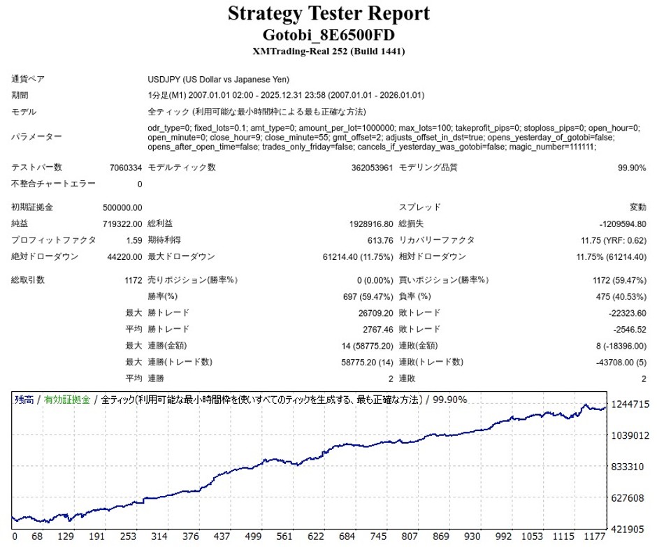 gotobiはUSDJPY専用のアノマリー系EAになります。