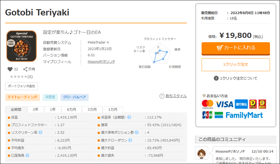 Gotobi Teriyakiはゴトー日EAとなります。USDJPYのほかにEURJPYも対応通貨となっています。