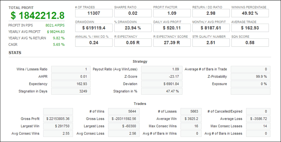 プロフィットファクター | 1.27 | 勝率 | 55.43% (1011/1824) |