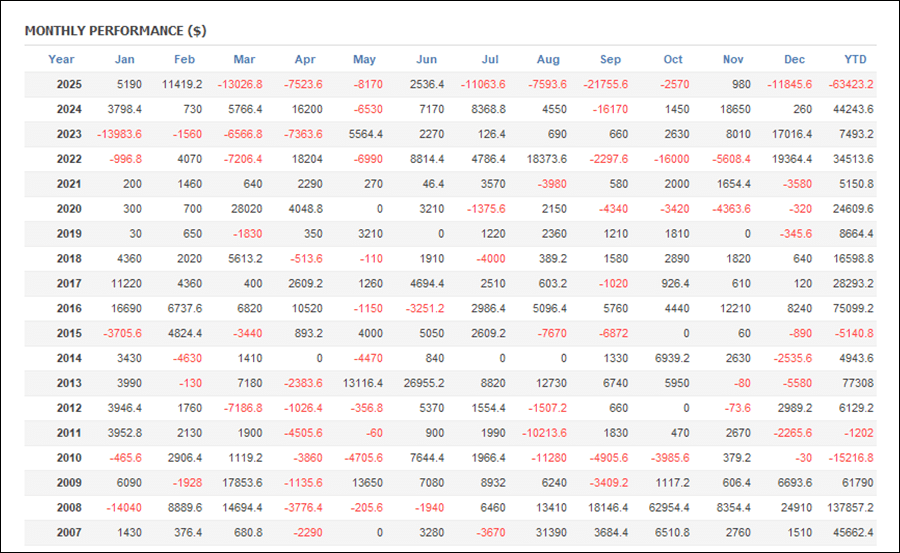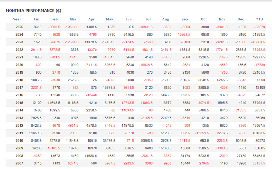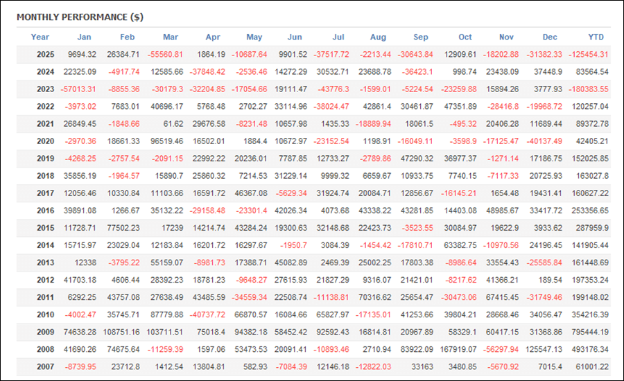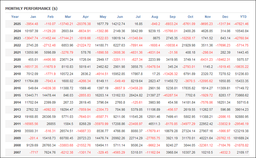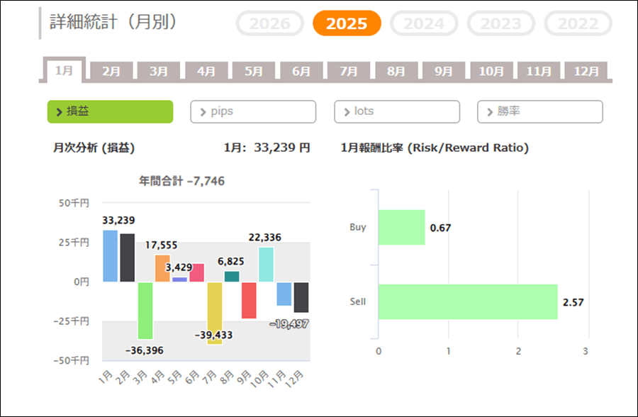 月次分析を見ると、2025年はトータルでマイナスです。