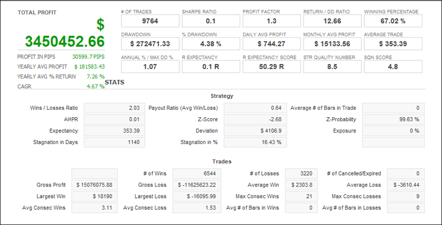 プロフィットファクター 1.12 勝率 65.39% (1619/2476)