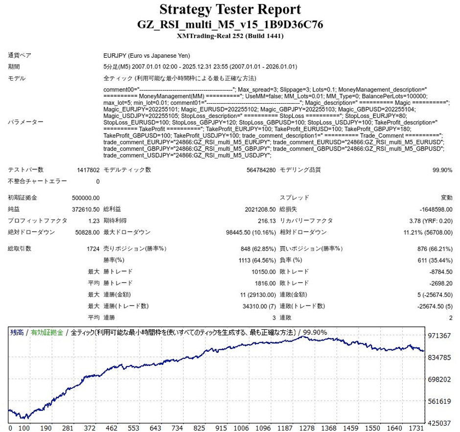 GZ_RSI_multi_M5のEA検証結果
