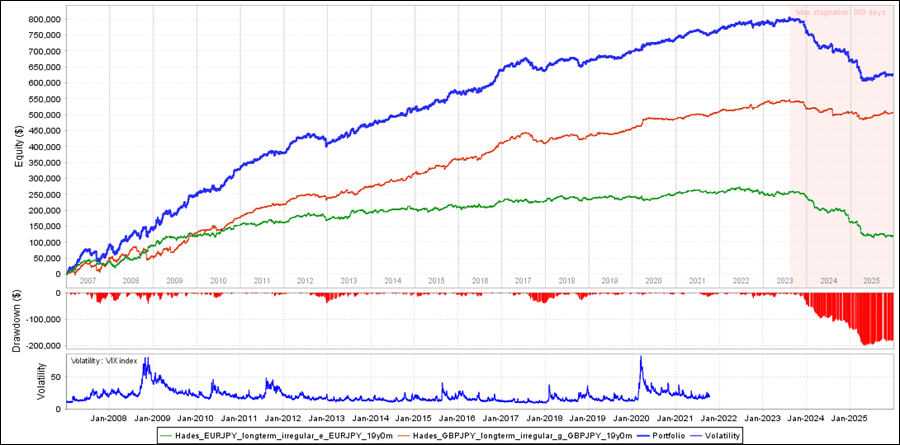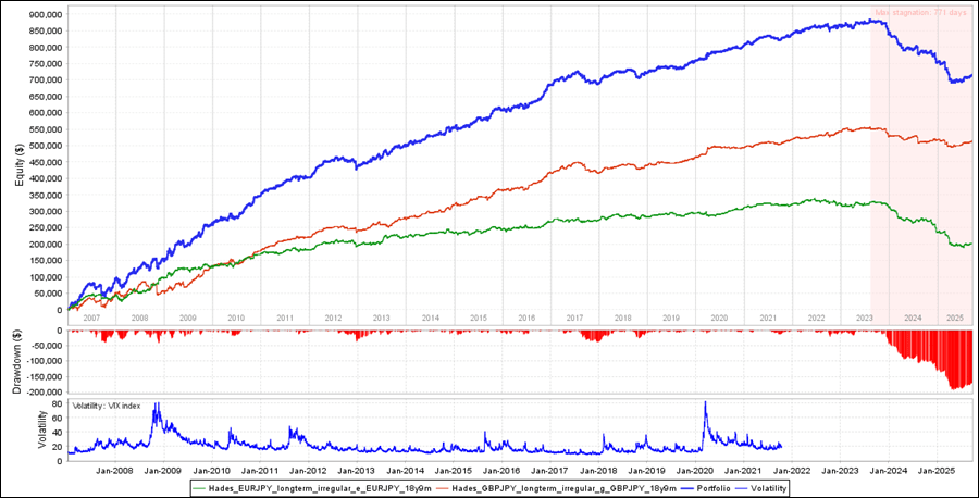 Hadesでは、EURJPYとGBPJPY専用のEAになりますが、EURJPYは過去18年でプラス、GBPJPYは過去18年、リリース後ともにプラスでした。