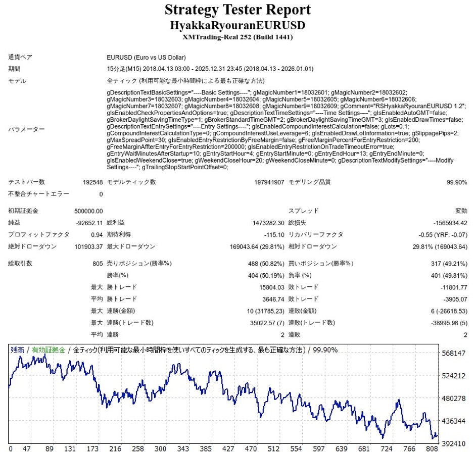 | 初期証拠金 | 500,000円 | 勝率 | 50.19% |