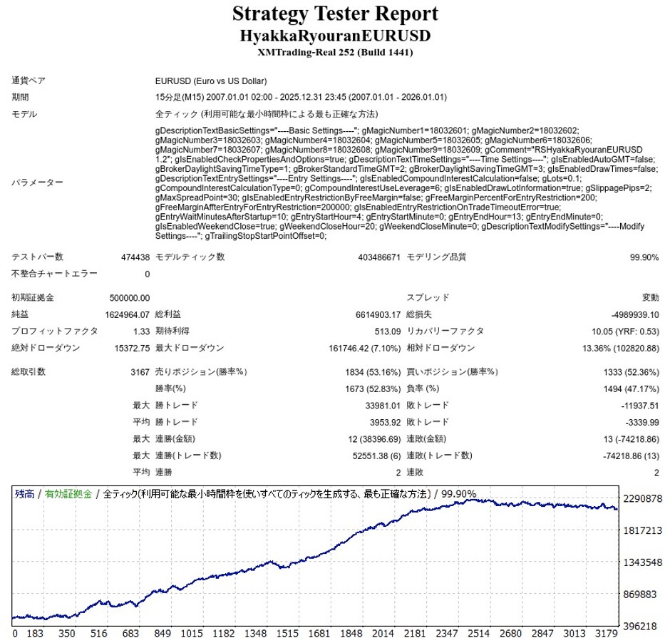 GogoJungleの有料EA「利大損小百花繚乱EURUSD」をTDS(Tick Data Suite)を使ってバックテストを行ったので、結果を紹介して行きます。