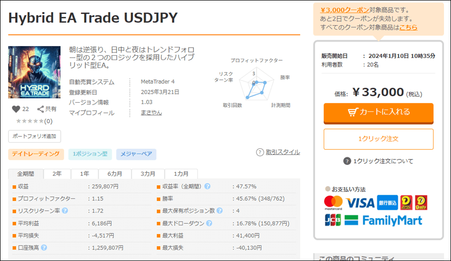 Hybrid EA Trade USDJPYの詳細を確認する