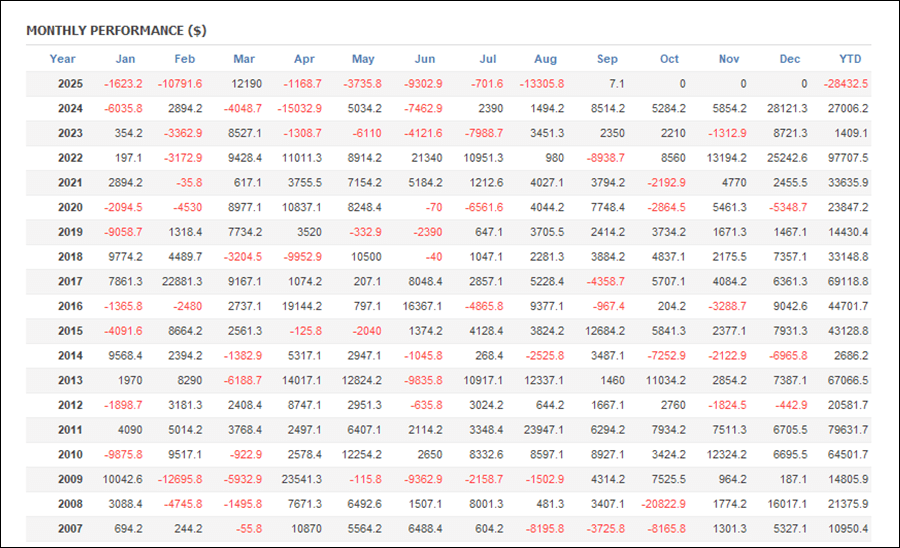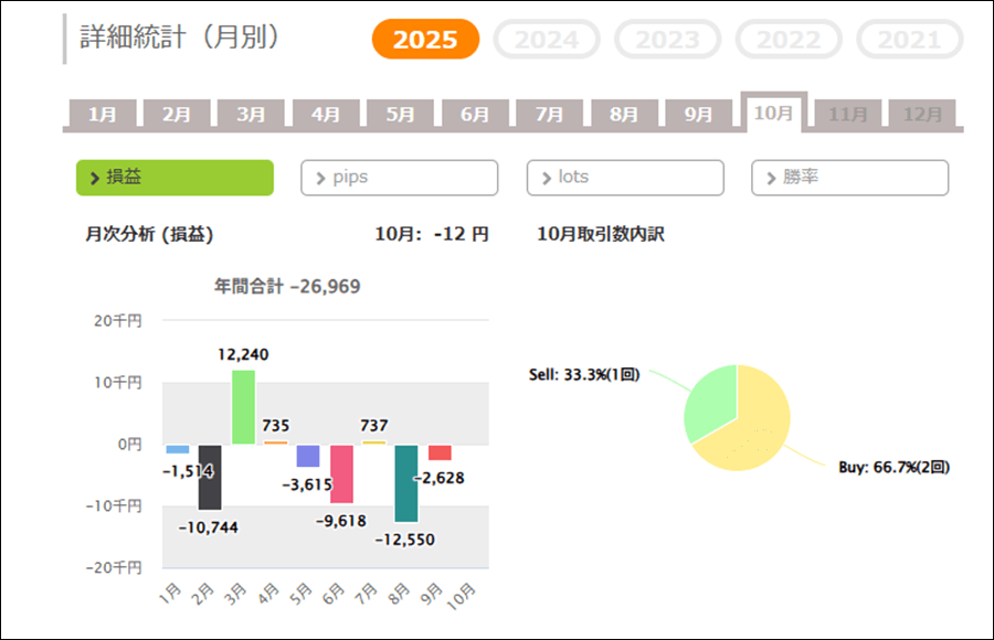 月次分析を見ると、2025年は今のところトータルでマイナスです。