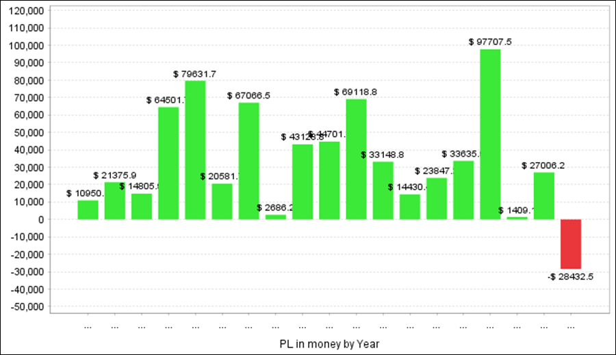 Hydrangeaの過去18年のバックテスト結果は、+64.1万円という成績になりました。