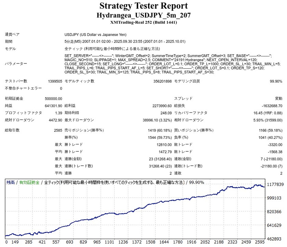 HydrangeaはUSDJPY専用の「アノマリー×テクニカル」のEAです。