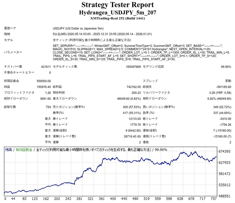 | 初期証拠金 | 500,000円 | 勝率 | 55.31% |