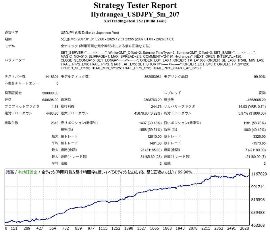 | 初期証拠金 | 500,000円 | 勝率 | 59.51% |