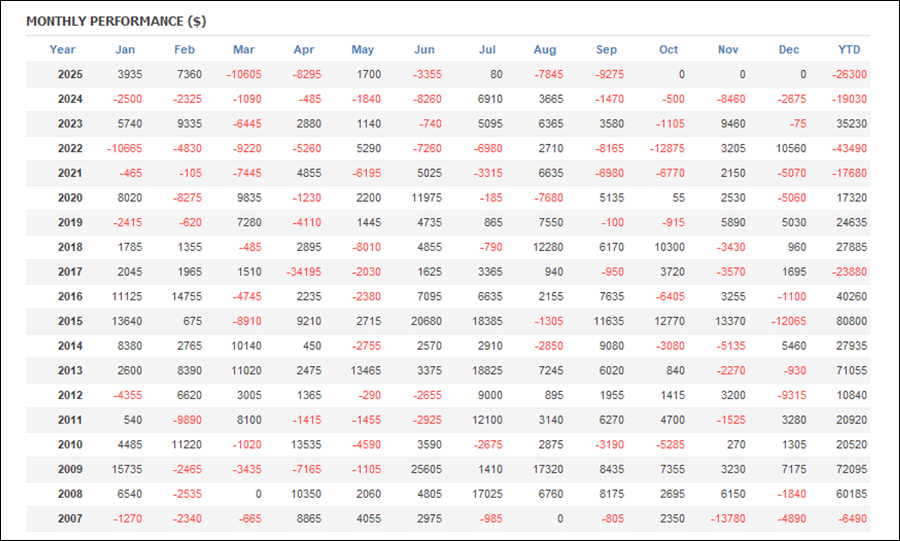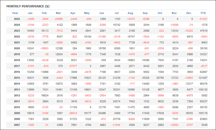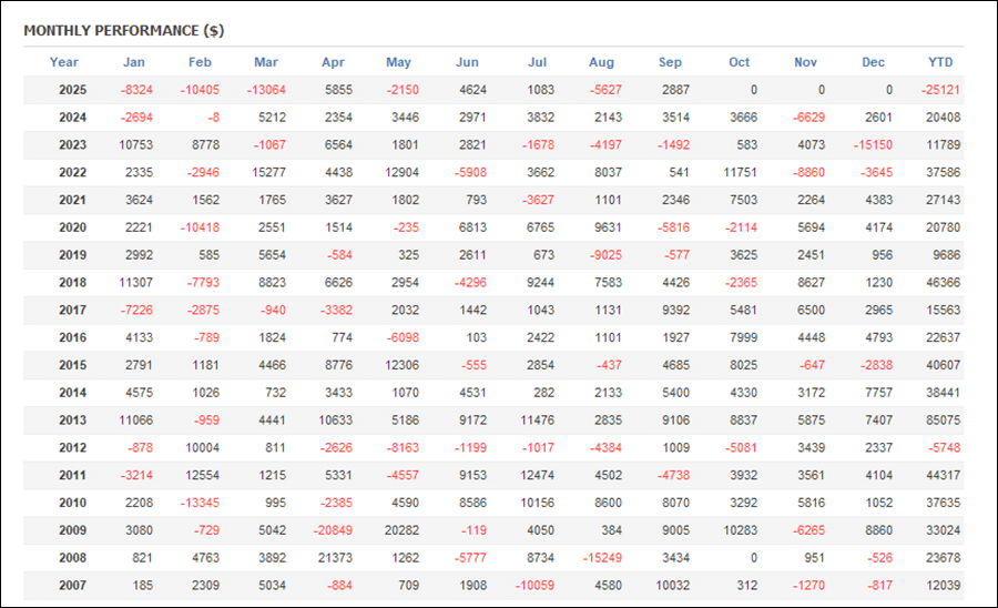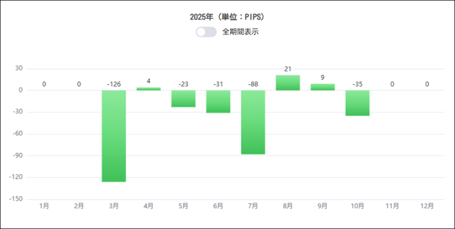 合計の年間成績では、ほとんどがプラス成績です。2025年は今のところトータルでマイナスです。