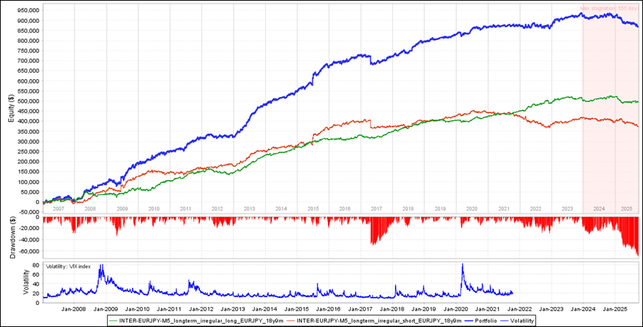 INTER EURJPY M5はロングは過去18年、リリース後ともにプラスでした。