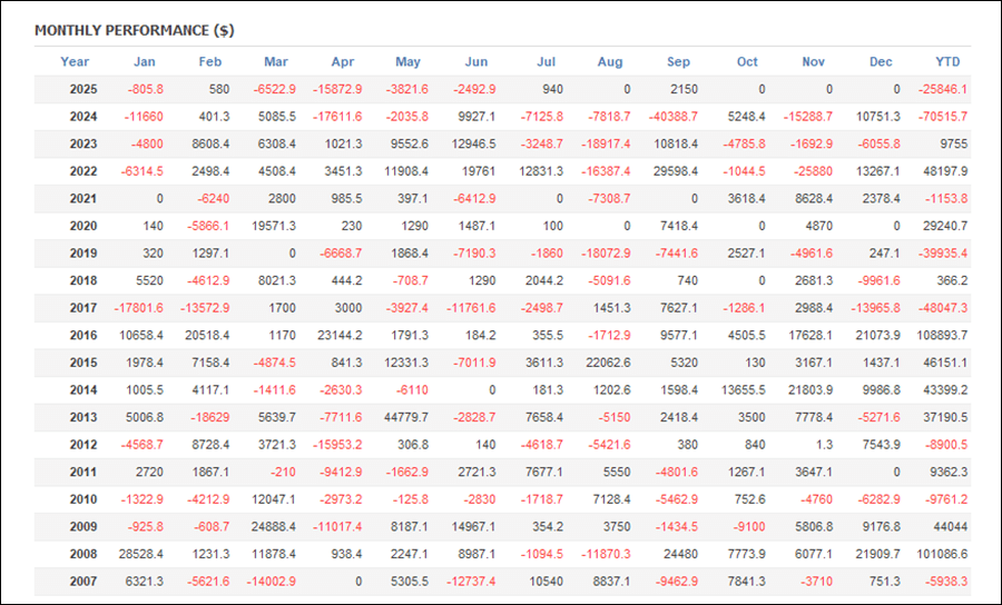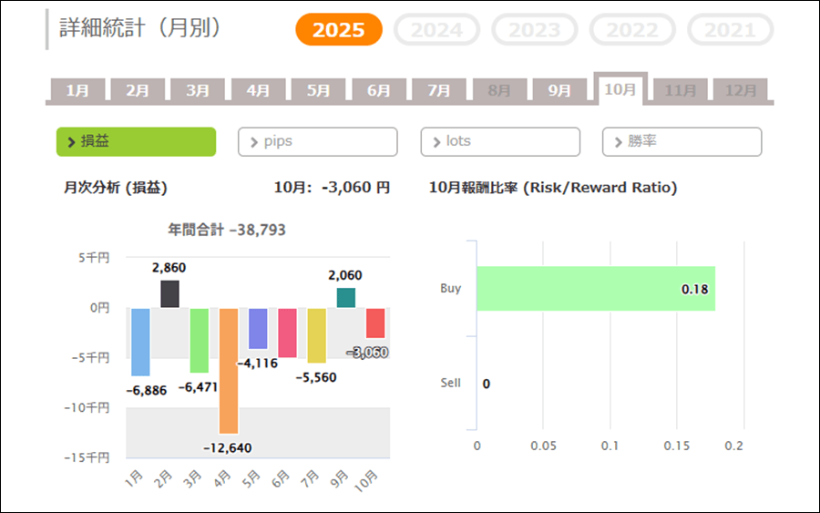 月次分析を見ると、2025年は今のところトータルでマイナスです。