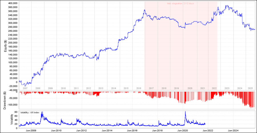 JaguarArmUSDJPYをQuantAnalyzerで見てみると、2017年~2021年が停滞しています。