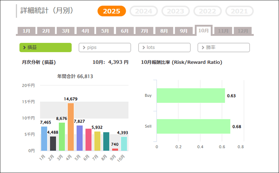 | 平均利益 | 408円 | 最大利益 | 55,149円 |