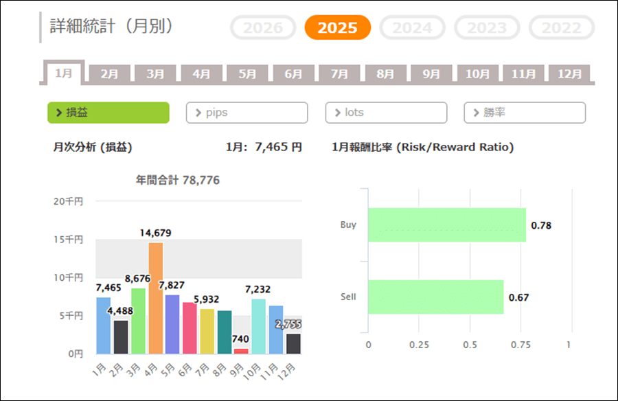 月次分析を見ると、ナンピン系ですので毎月利益を積み上げています。